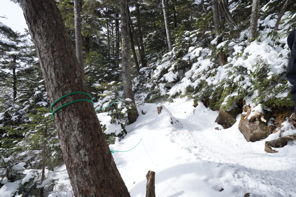 ここはそれほど傾斜もなく、道もロープが張られているので比較的明瞭です。