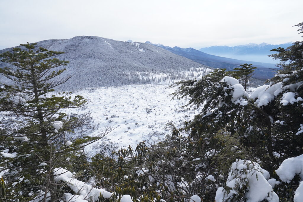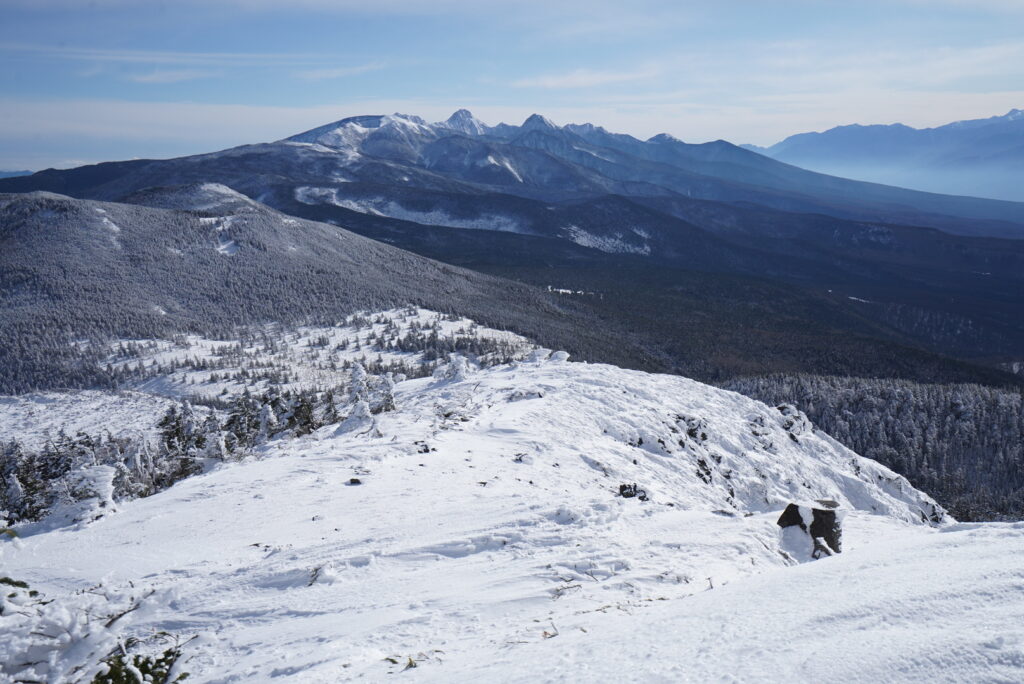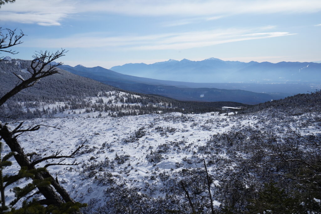 この場所からでも、北アルプスが凍てついた極限の環境であることは想像に難くありません。