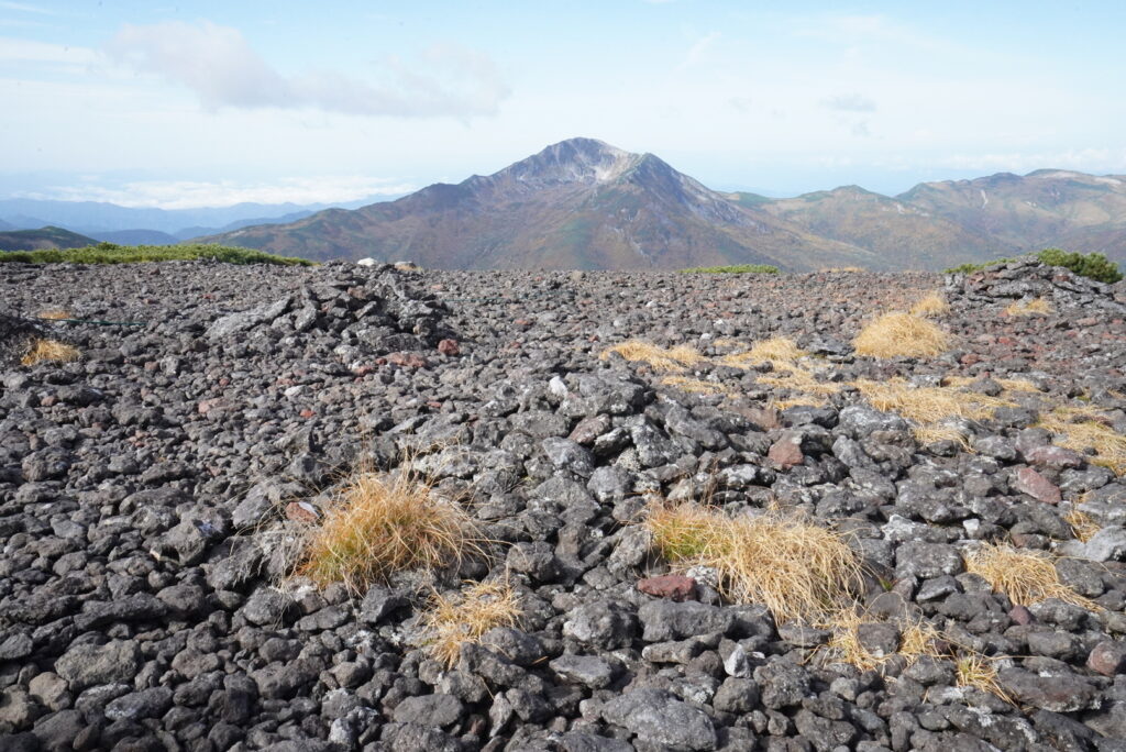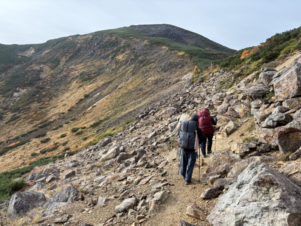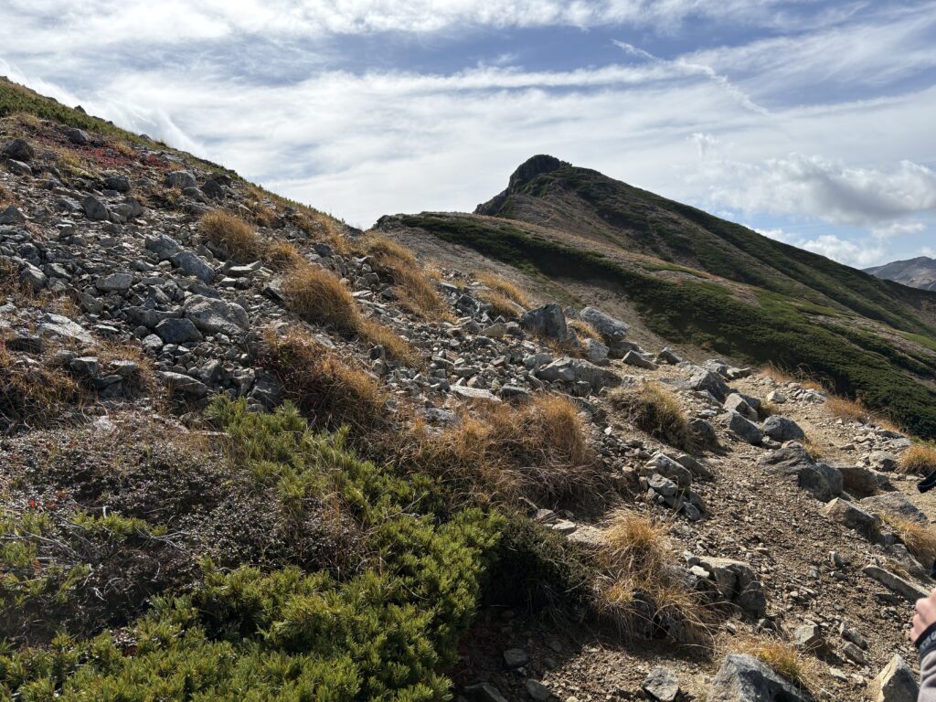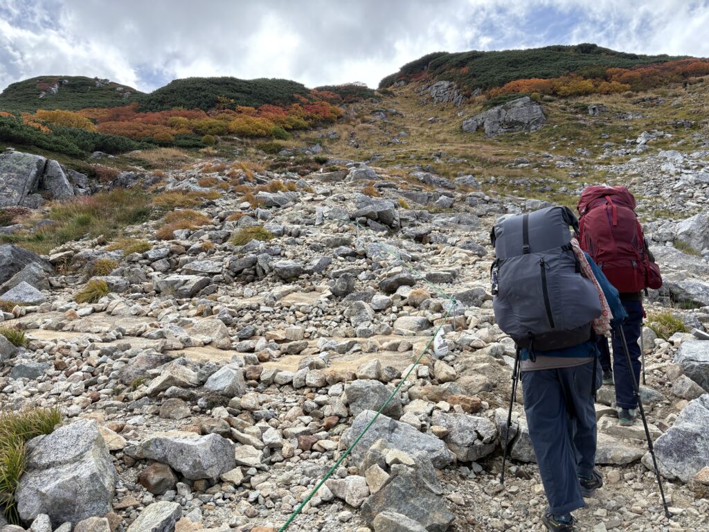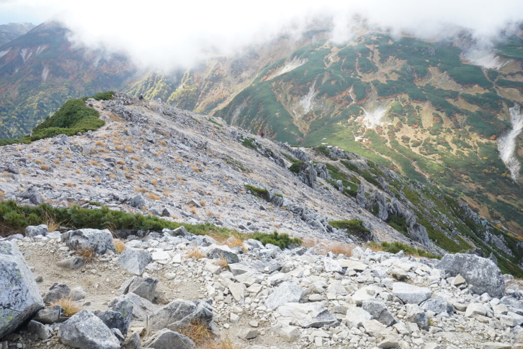 足元は、ガレ場が中心ですが大きな岩が転がっている場面も目立ちます。