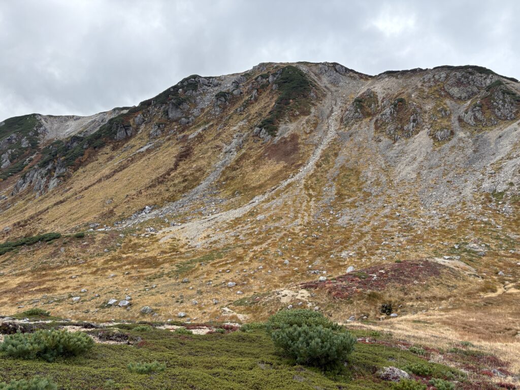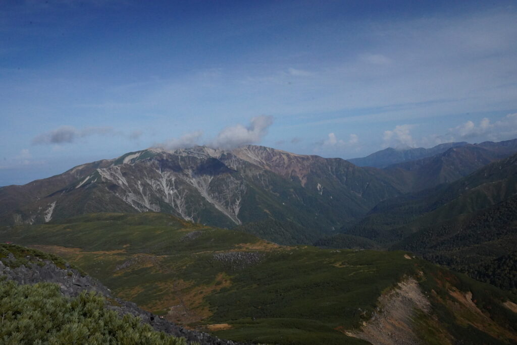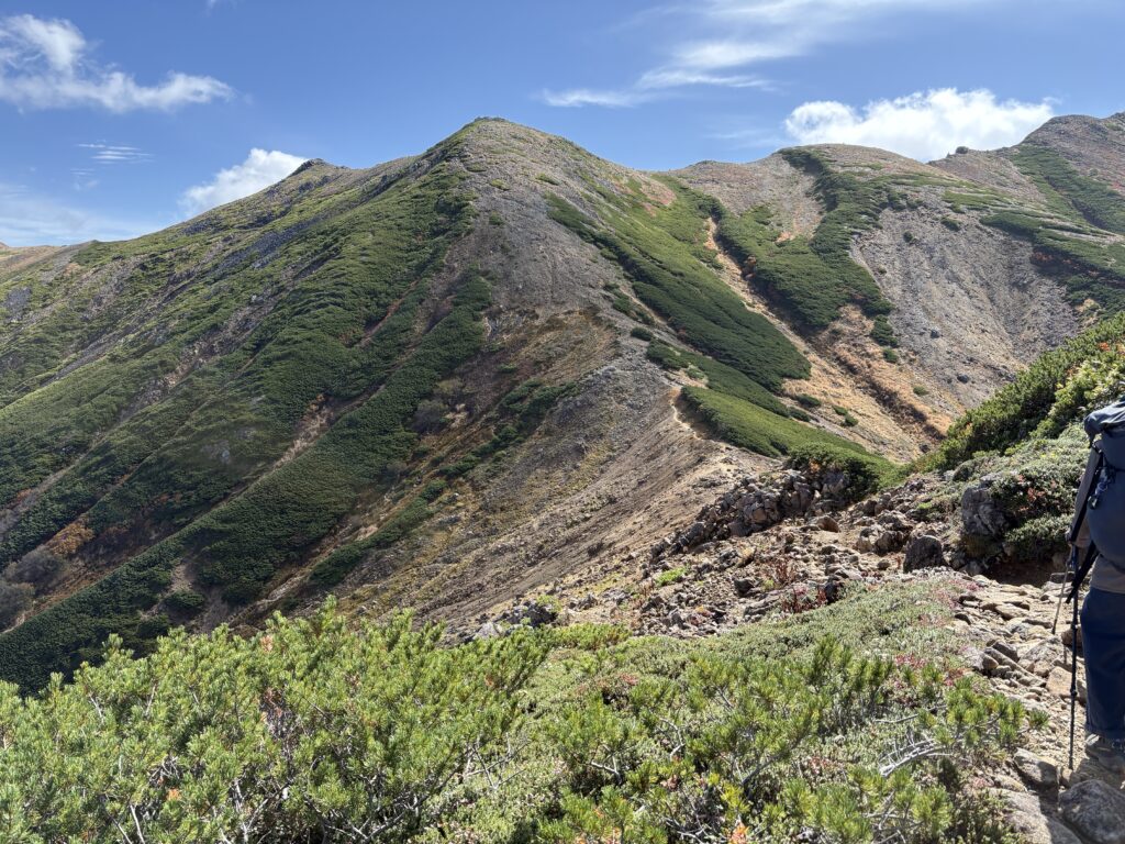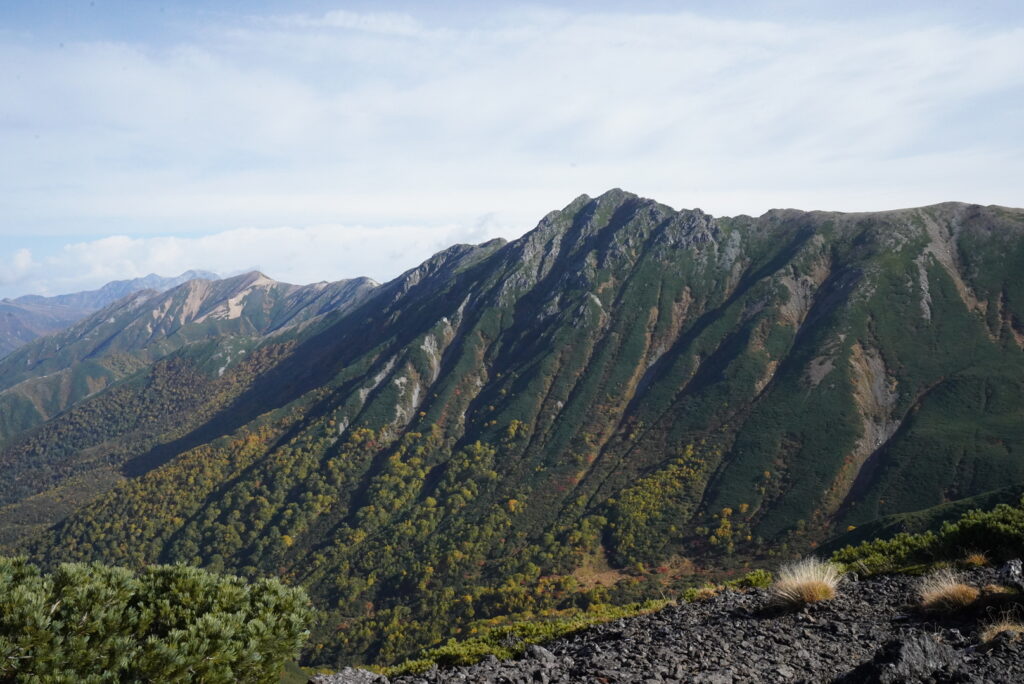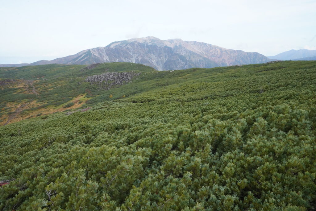 手前のハイマツに隠れていますが、相当巨大な山です。