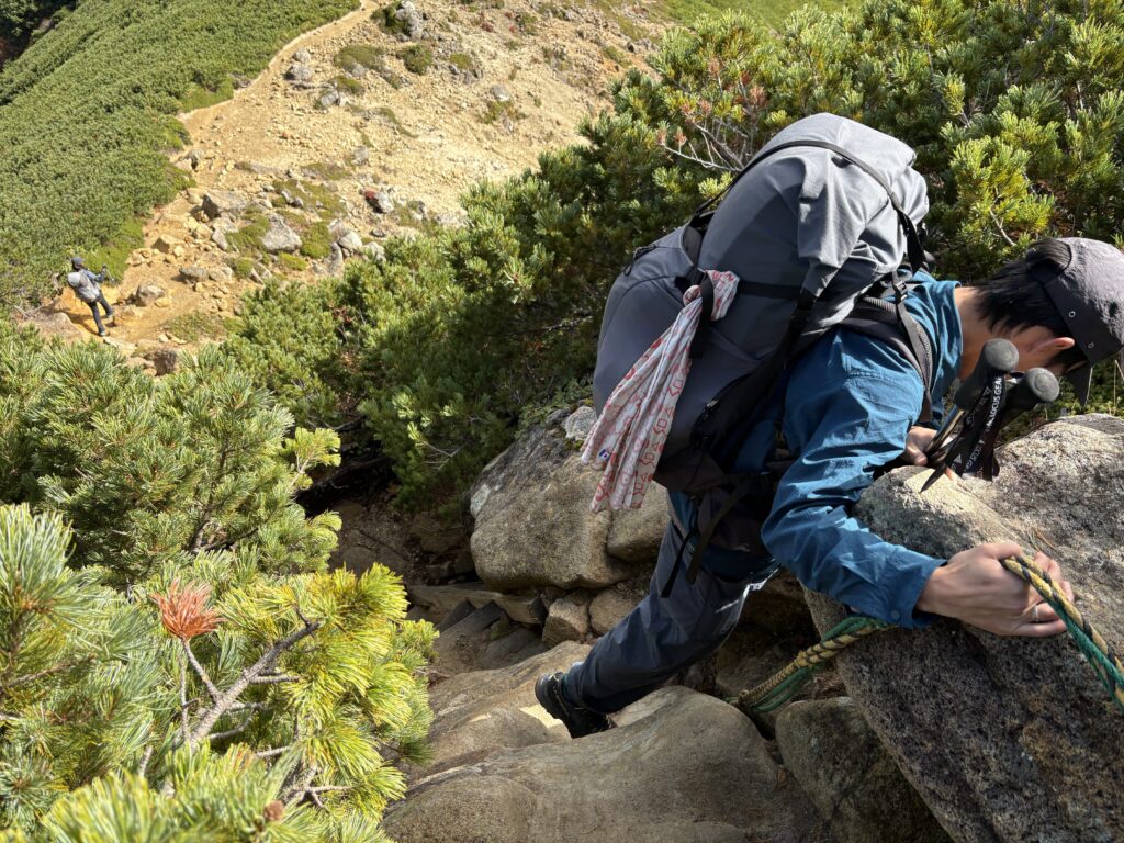 途中には、ほとんど垂直に近い場所を下らないといけない場所があります。