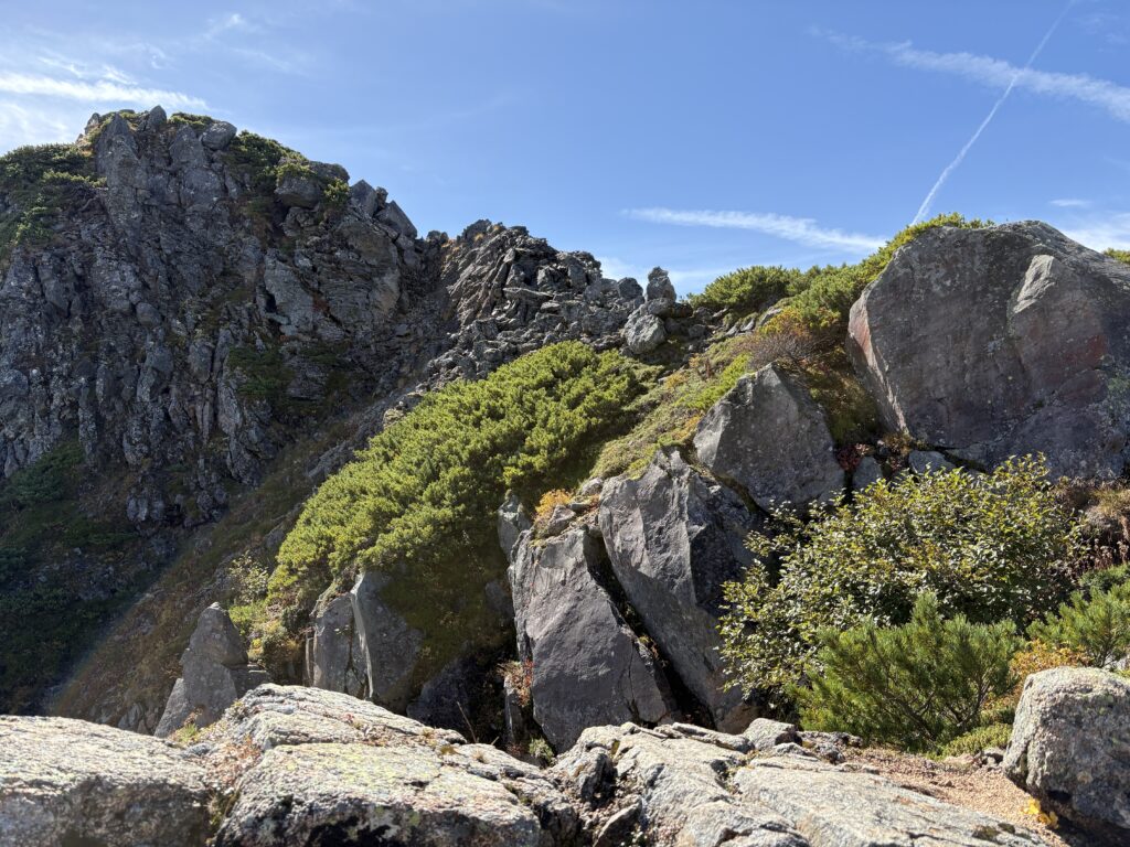 更に上へ登ると、ガレ場から岩場へ変化します。
