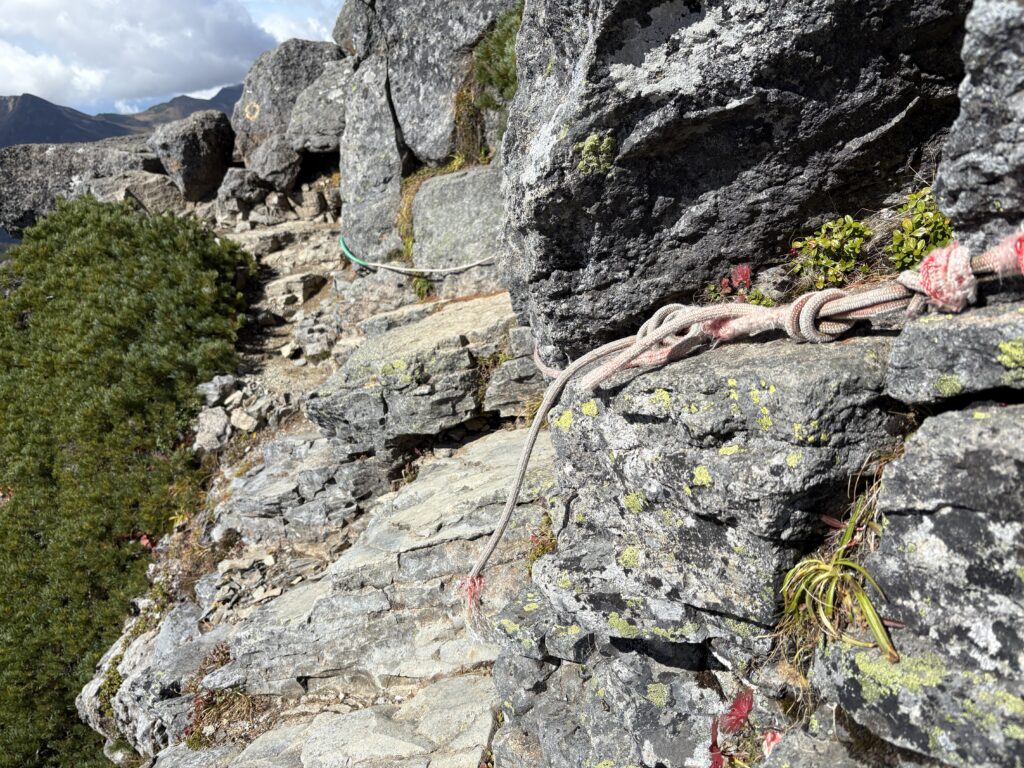 西側は崖になっており、そこにあるロープは非常に弛んでいるので、使わない方がいいかもしれません。