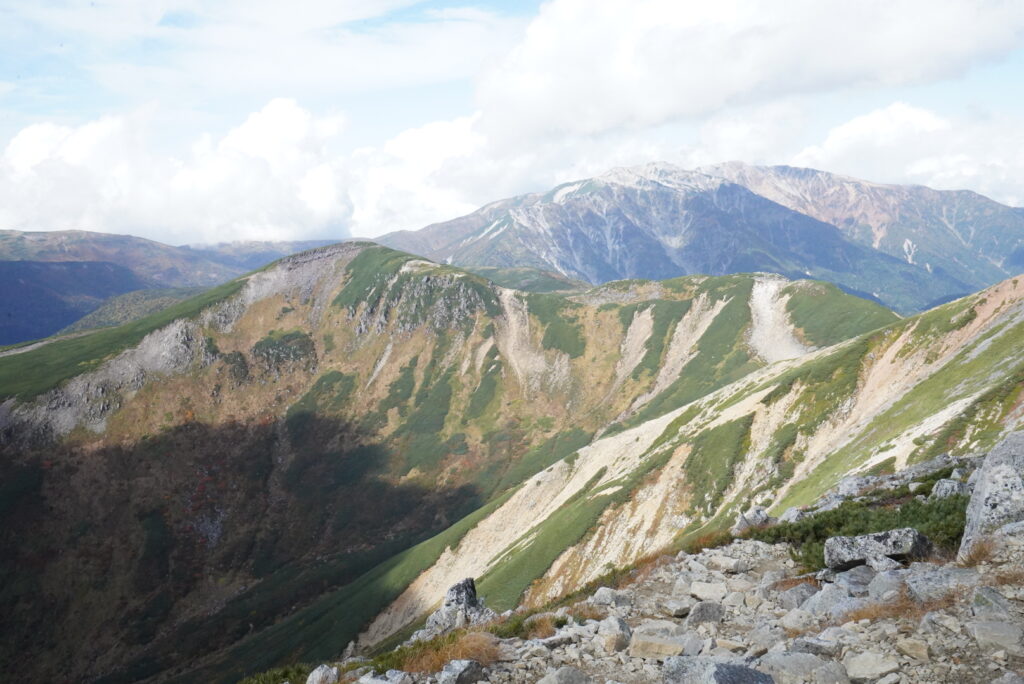 正面には、北アルプスで最も遠いと言われている水晶岳が、凛々しく屹立しています。