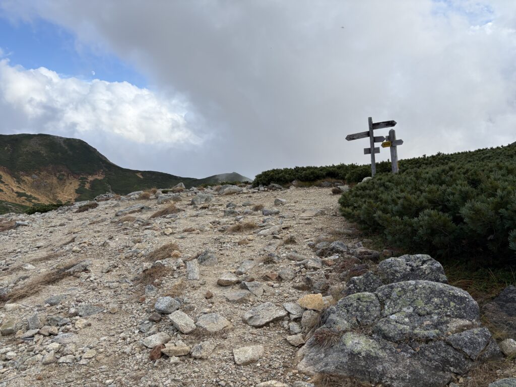 ここから進路は南に行きます。ちなみに反対方向に行くと、水晶岳に着きます。